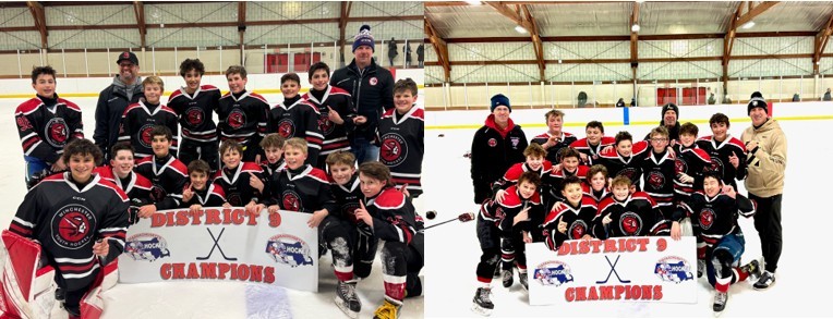 The Pee Wee 1s and 2s both won District 9 Thursday to advance to the State Tournament. Both teams won by a score of 7-1 to sweep Waltham on their home ice. Good luck to the coaches and kids in the state tournament in March